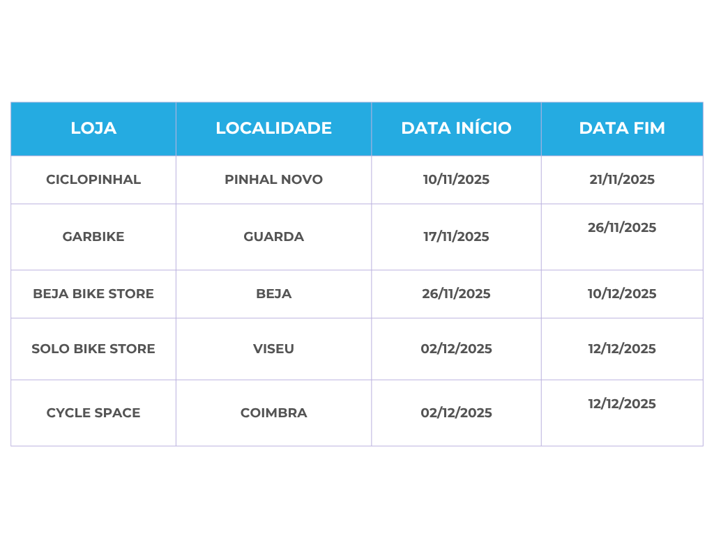 Estas são as primeiras lojas a receber as XTR Demo Stations em Portugal: